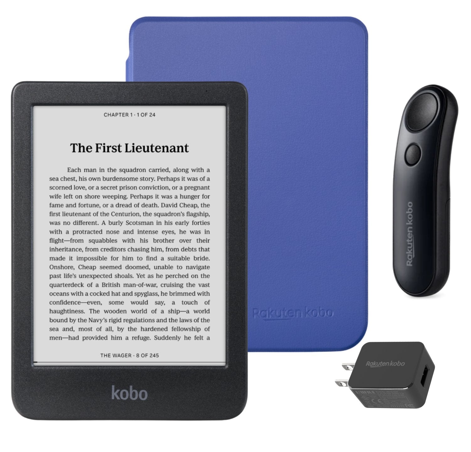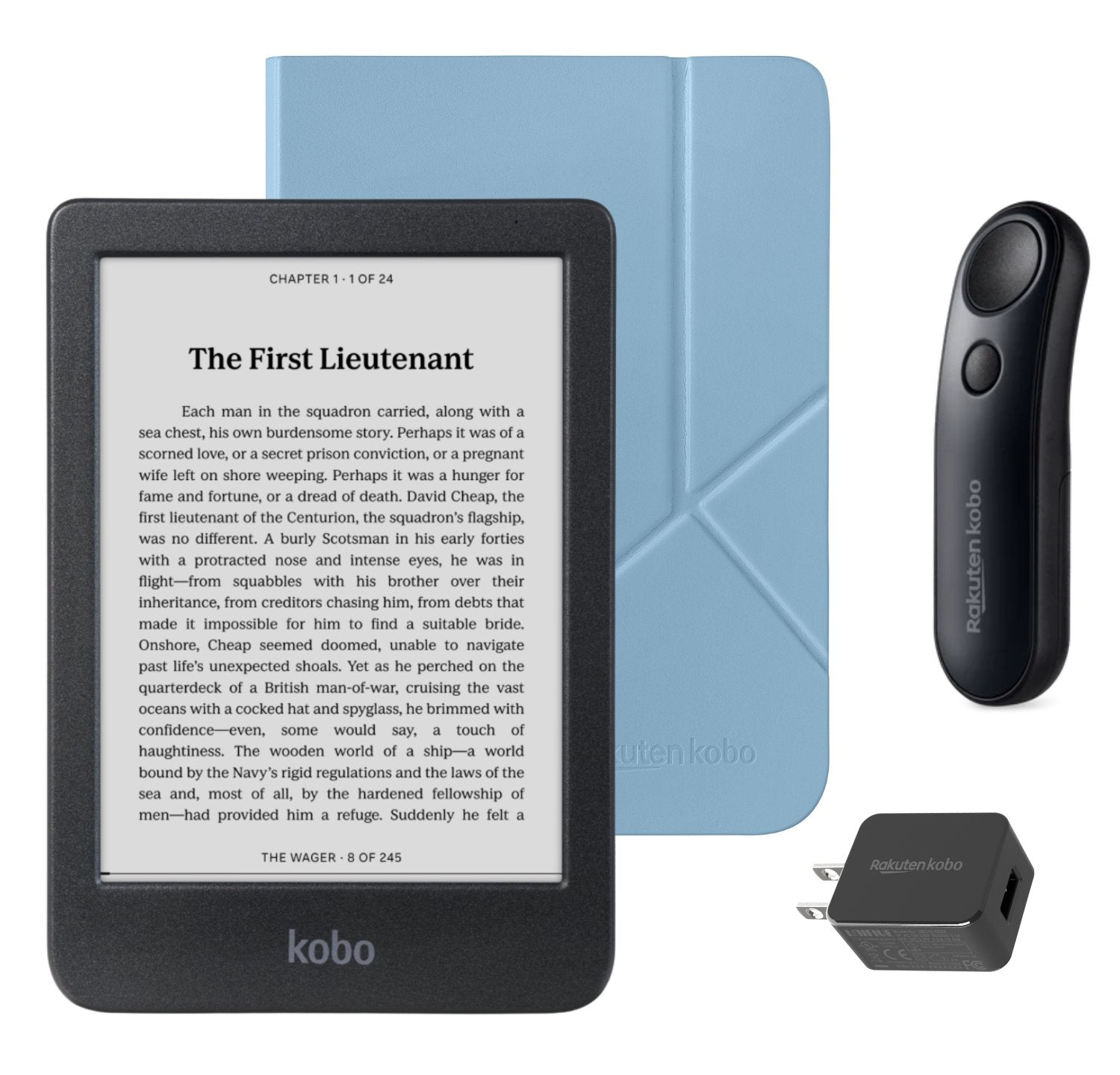 Enjoy the simple joys of reading with Kobo Clara BW, the perfect eReader for those new to eBooks. Its glare-free 6" screen lets you read in bright sunlight without reflections, and you can safely take it to the beach or pool with its full waterproof protection. For nighttime reading, Kobo Clara BW features optional Dark Mode, plus built-in ComfortLight PRO to adjust brightness and reduce blue light. Listen to Kobo Audiobooks whenever you like with Bluetooth wireless technology. With 16GB of storage, bring your entire Kobo library anywhere. Personalize your Kobo Clara BW by choosing the SleepCover that best matches your style. SleepCovers are available in Dusk Blue, Butter Yellow, Candy Pink, Cayenne Red, Misty Green, Black, or Cobalt Blue. Kobo Clara BW is part of Kobo's ongoing commitment to reduce our impact on the environment, so the eReader and the SleepCover are made with recycled and ocean-bound plastic. Its a better way to take your reading life to the next level. Your eReader, your story. Bundle includes Kobo Clara BW eReader and Kobo Clara BW/C SleepCover case and a Kobo Remote Page Turner. AC Adapter is optional.