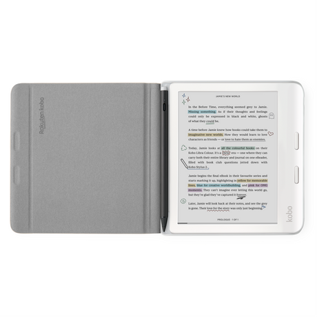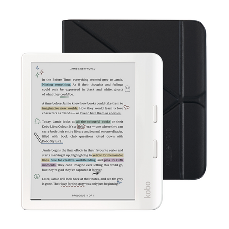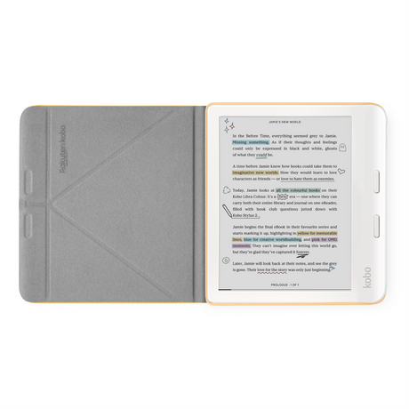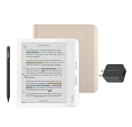 Kobo Libra Colour (White) eReader with Sand Beige Notebook SleepCover & White Stylus 2Gen Bundle