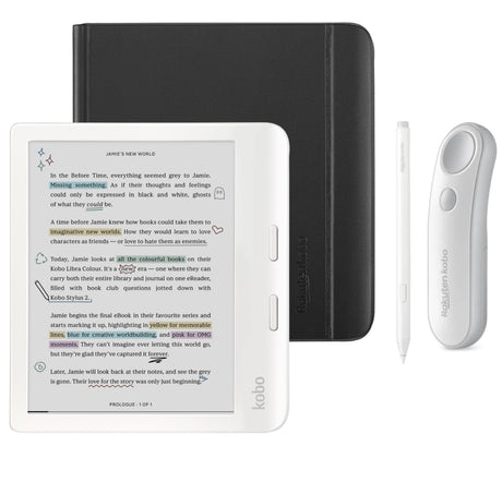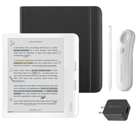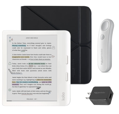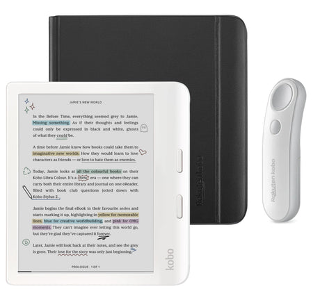 Kobo Libra Colour (White) eReader with Notebook SleepCover & White Remote Page Turner Bundle