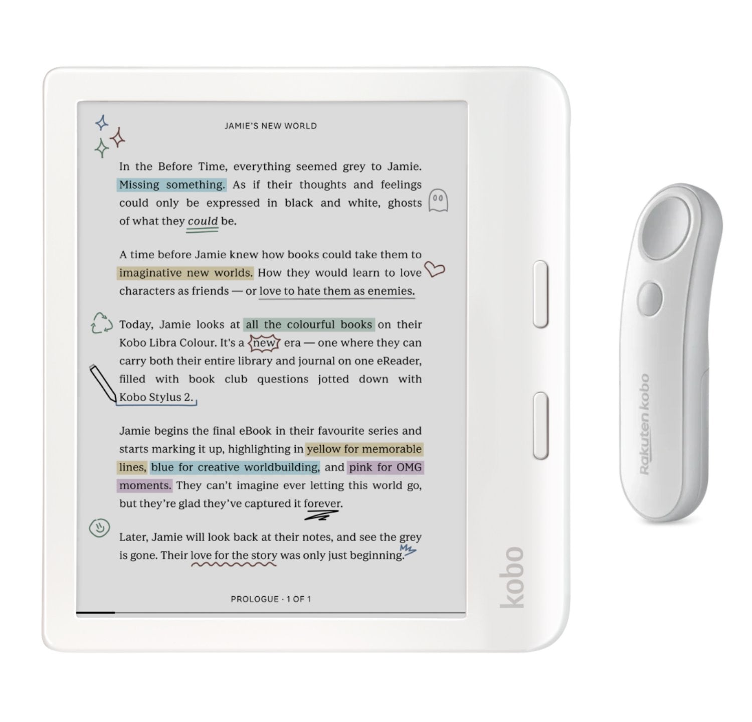 Kobo Libra Colour (White) eReader with White Remote Bundle