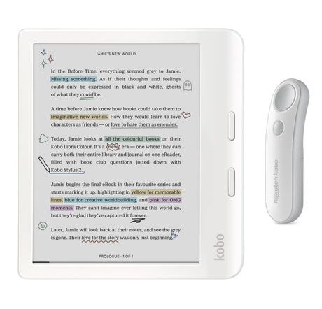 Kobo Libra Colour (White) eReader with Black Notebook SleepCover & White Stylus 2Gen Bundle