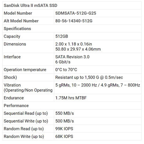 SanDisk Ultra II mSATA 512GB Solid State Drive 2-Inch SDMSATA-512G-G25