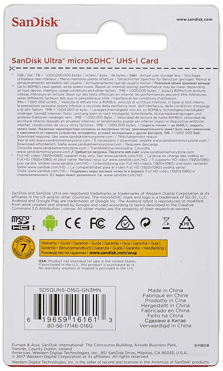 SanDisk Ultra SDSQUNS-016G-GN3MN 16GB 80MB/s UHS-I Class 10 microSDHC Card