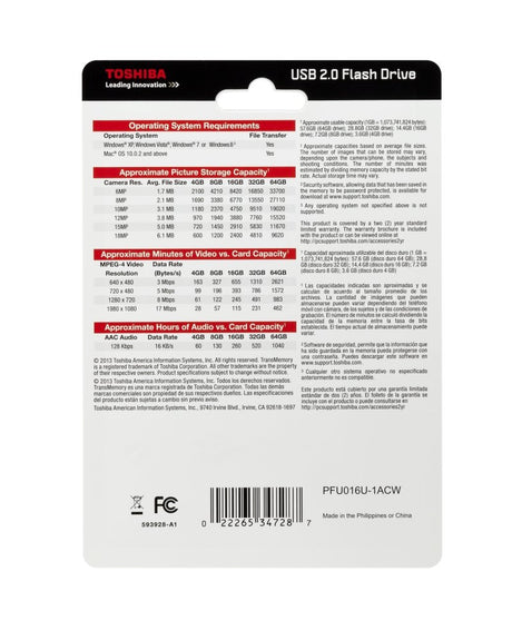 Toshiba TransMemory USB 2.0 Flash Drive, 16GB (PFU016U-1ACW)