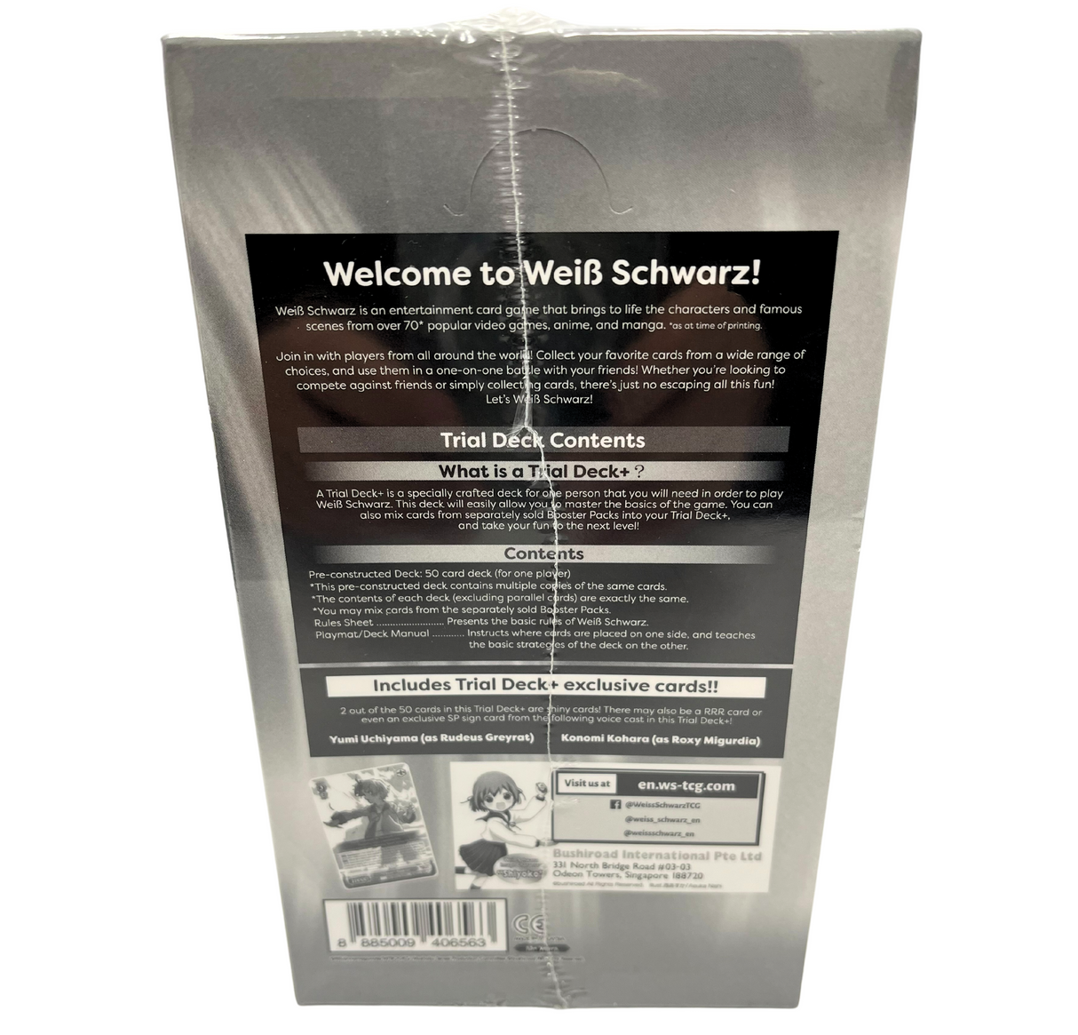Experience the captivating world of "Mushoku Tensei: Jobless Reincarnation" with the Weiss Schwarz Trial Deck+. This meticulously crafted deck introduces players to the anime's characters, allowing them to immerse themselves in the strategic and dynamic gameplay of Weiss Schwarz. With carefully selected cards, the deck provides a balanced and exciting introduction for both newcomers and seasoned players. Unleash the power of your favorite characters and embark on thrilling battles within the Weiss Schwarz universe. The Trial Deck+ is not only a gateway into the Mushoku Tensei series but also a collectible gem for fans and collectors alike.