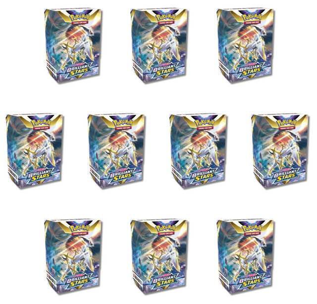 Trainers, get ready to witness the brilliance of Pokemon with the Sword & Shield Brilliant Stars Build & Battle Box. This pack of 10 Build & Battle Boxes is your gateway to uncovering the stunning mysteries of the Brilliant Stars expansion. Dive into the radiant battles and elevate your Pokemon TCG collection with this exciting bundle! This listing is a pack made of 10 Pokémon Sword & Shield Brilliant Stars Build & Battle Boxes.