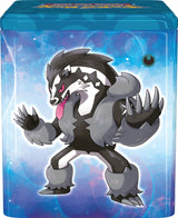 - Choose a tin that matches your type: fierce Fighting type, scorching Fire type, or shadowy Darkness type!