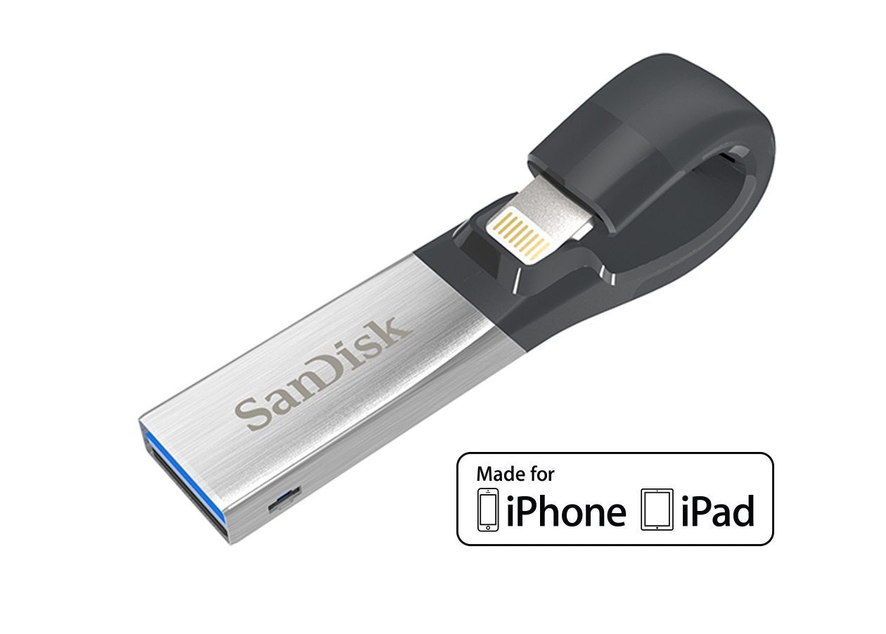 Free up space on your iPhone or iPad quickly and easily with the SanDisk iXpand Flash Drive (1). This flash drive features a Lightning connector that lets you easily transfer photos, videos, and other files to the drive. You can also transfer files to a PC or Mac.