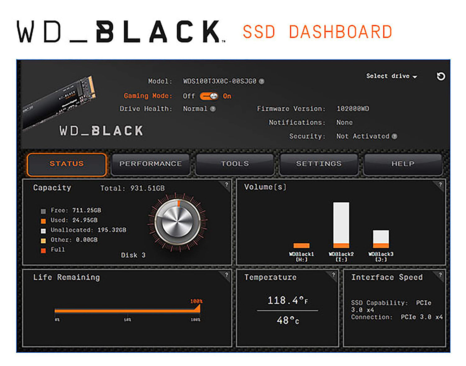- An exclusive WD BLACK SSD dashboard with gaming mode improves game performance